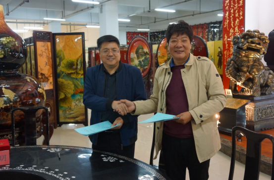 天水飞天雕漆工艺家俱有限责任公司董事长张晓彤、总经理朱良军分别介绍了天水飞天雕漆工艺家俱有限责任公司的基本情况、主要产品、发展战略,并指出校企合作是学校发展的需要,也是企业发展的需要,在合作过程中,将加强与学院的沟通协调,充分发挥企业的资源优势和市场优势,为当地非遗文化发展和非遗产品推广助力。