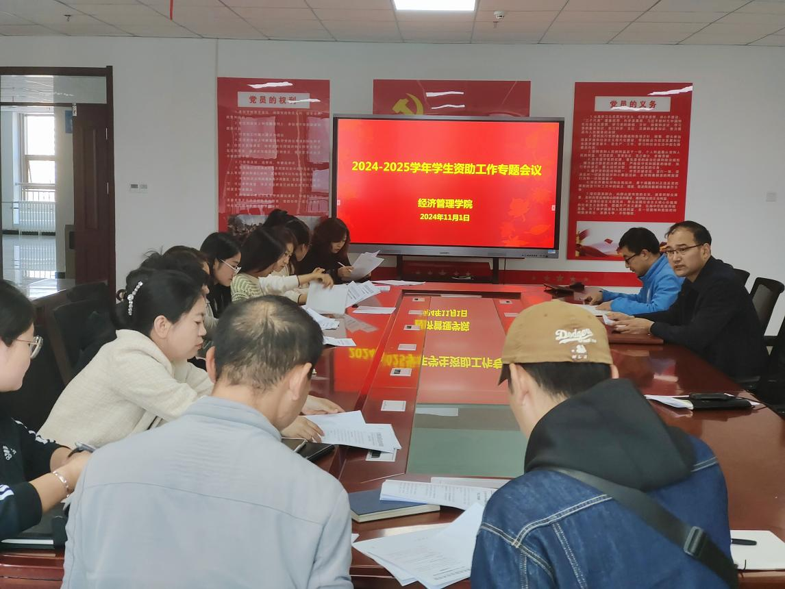 为高质高效落实国家资助政策,顺利开展学院2024-2025学年奖助学金评选工作。11月1日下午,经济管理学院在明德楼901会议室召开2024-2025学年学生资助工作专题会议。学院党总支书记谢宏斌、全体班主任及辅导员参加,会议由党总支副书记赵红红主持。