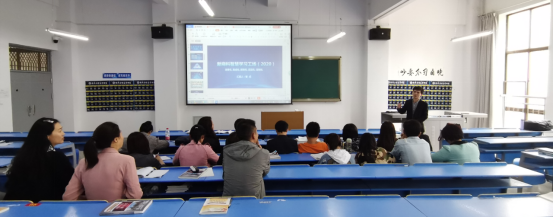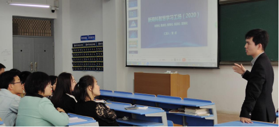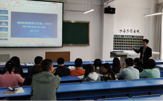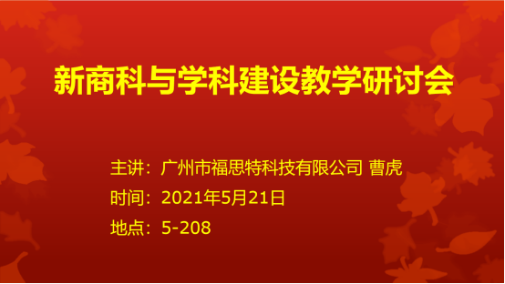 “新商科学科发展与建设教学研讨会”。特邀请广州市福思特科技有限公司曹虎老师就“新商科智慧学习工场(2020)”介绍新商科最新的发展现状及趋势,经济管理系全体教师参加研讨会并与曹虎老师开展专业交流。
