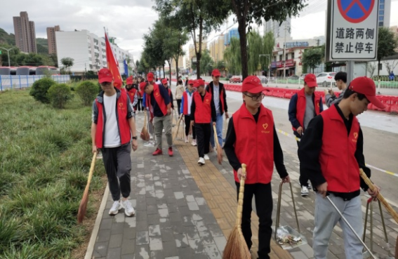 2021年9月18日下午,经济管理系党总支党员及学生干部走出校园,开展“包街包巷包小区”志愿服务活动。活动中,各位党员用过筛子的方式,走上人行天桥、走进沿街店铺,不留一片空白、不剩一个死角,对责任区域沿线的道路、树坑、绿地内的垃圾、烟蒂、污物及积水进行了彻底清理,对商户及行人乱丢、乱扔、乱倒等不文明行为进行了及时劝阻,向沿街周边市民宣传了文明城市创建工作对建设富裕文明、和谐幸福美好新天水的重要意义。