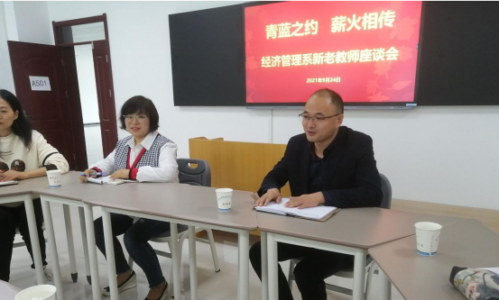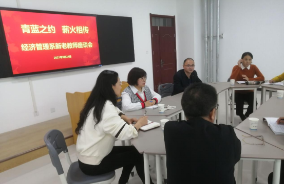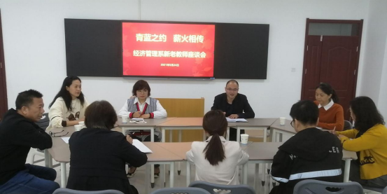 为进一步提升新入职青年教师的教学能力和班级管理能力,发挥骨干教师在教育教学中的“传、帮、带”作用,2021年9月24日下午,经济管理系举行以“青蓝之约 薪火相传”为主题的新入职教师座谈会。新入职的2位青年教师和各专业副高级以上职称骨干教师参加了此次座谈会。座谈会由系党总支书记、主任赵典凯同志主持。