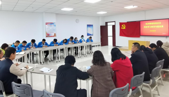 2021年10月12日下午,经济管理系党总支全体党员在1-A501教室举行了党史学习教育专题党课活动。党总支书记赵典凯同志以“从南湖红船到双清别墅——中国共产党革命文化的形成和发展”为主题,为全体党员讲授专题党课。