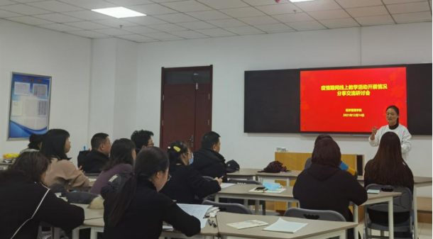 接着,王友平、金胜利、金志鹏、王玥、王斌、蔡莉、李长艳等教师结合自己疫情期间线上教学的情况从教学使用的平台、使用过程中遇到的困难以及在教学过程中一些好的做法等方面进行了交流。