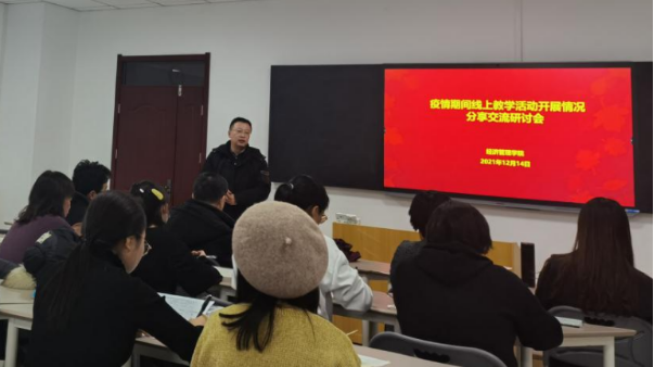 为响应学院“教学质量月”活动的号召,经济管理学院于2021年12月14日下午在1-A503组织召开了“疫情期间线上教学活动开展情况分享交流研讨会”。本次活动由商务类教研室主任陈海峰老师主持,经济管理学院全体教师参与了此次活动。