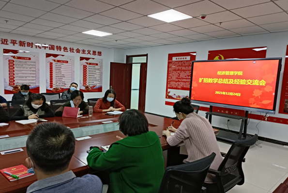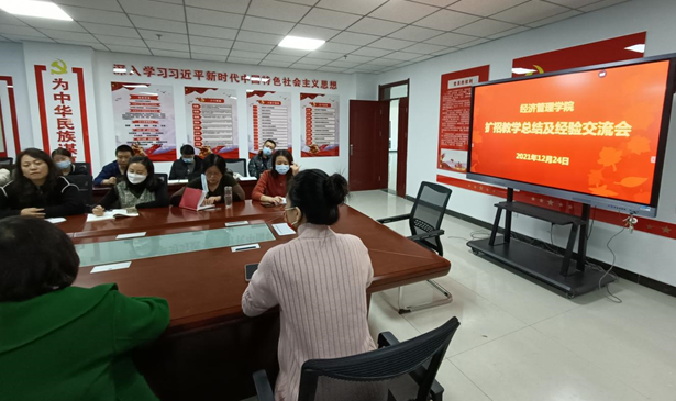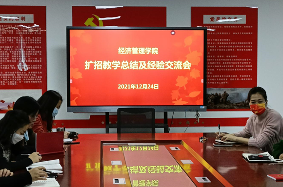 为贯彻落实关于高职扩招的有关要求,全面深化职业教育改革,高质量的完成扩招教学工作,经济管理学院于2021年12月24日在1-A901组织召开了“扩招教学总结及经验交流会”。本次交流会由经济管理学院副院长王玥主持,经管学院全体教师悉数参会。