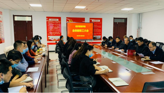 12月21日下午,经济管理学院在1-A901党建活动室召开教职工大会宣布学院党委关于调整内设机构和部分干部的任职决定。学院党委委员、副院长毛文辉,学院办公室主任谢旭斌,学院党委组织部部长毕明明出席会议,经济管理学院全体教师参加会议。