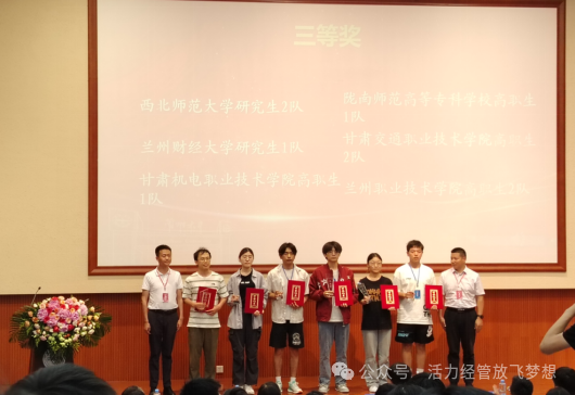 5月25日,由甘肃省教育厅主办、兰州新区商贸物流投资集团有限公司和甘肃省企业创新发展研究院协办的第四届甘肃省高等学校新商科大赛在兰州大学隆重举行。这场比赛汇聚了甘肃地区各大高校的商科精英学子,他们以创新的思维、独到的见解,展现了新时代商科人才的魅力。经过紧张而激烈的角逐,甘肃机电职业技术学院经济管理学院参赛团队获得二等奖和三等奖的佳绩,为学校争得了荣誉。