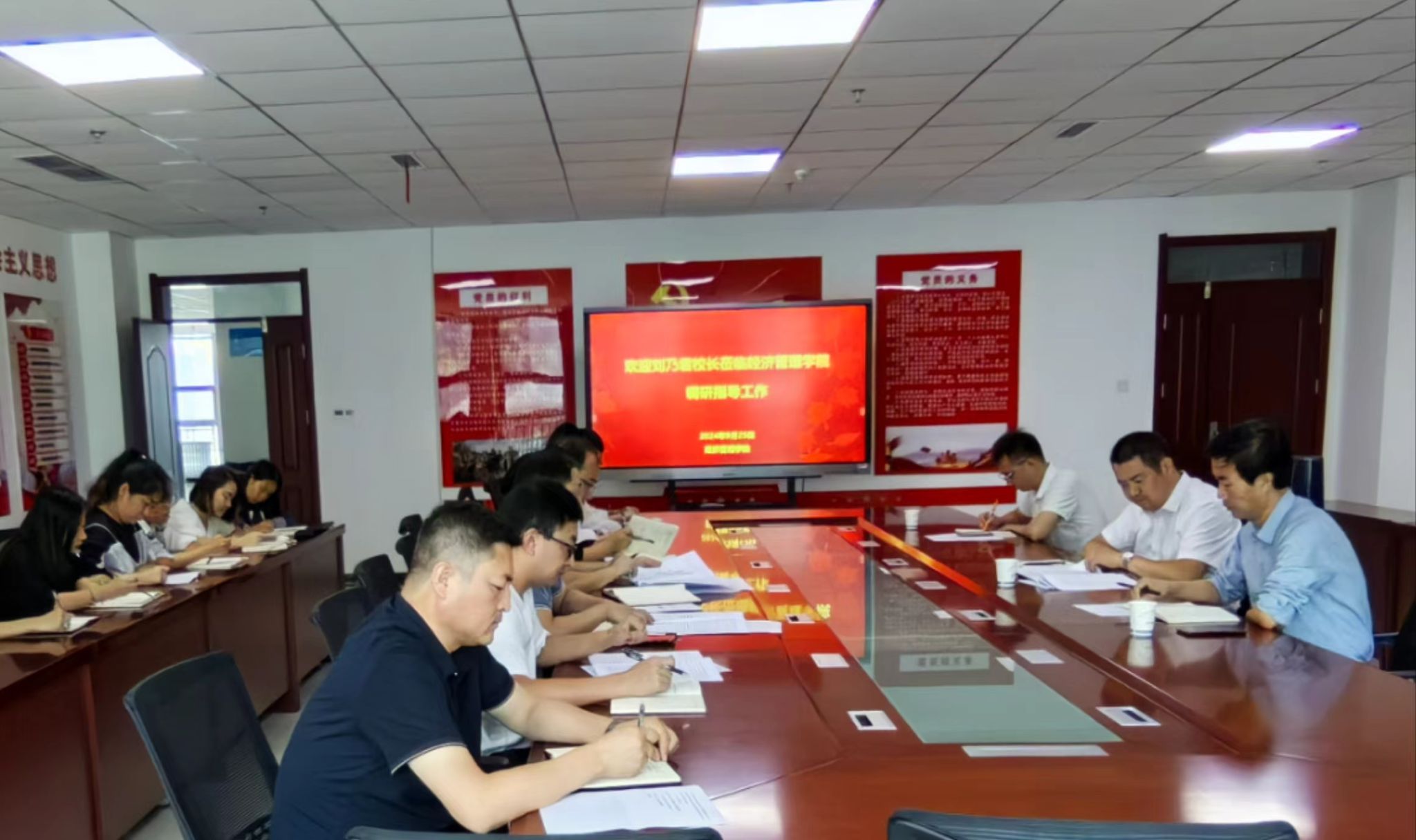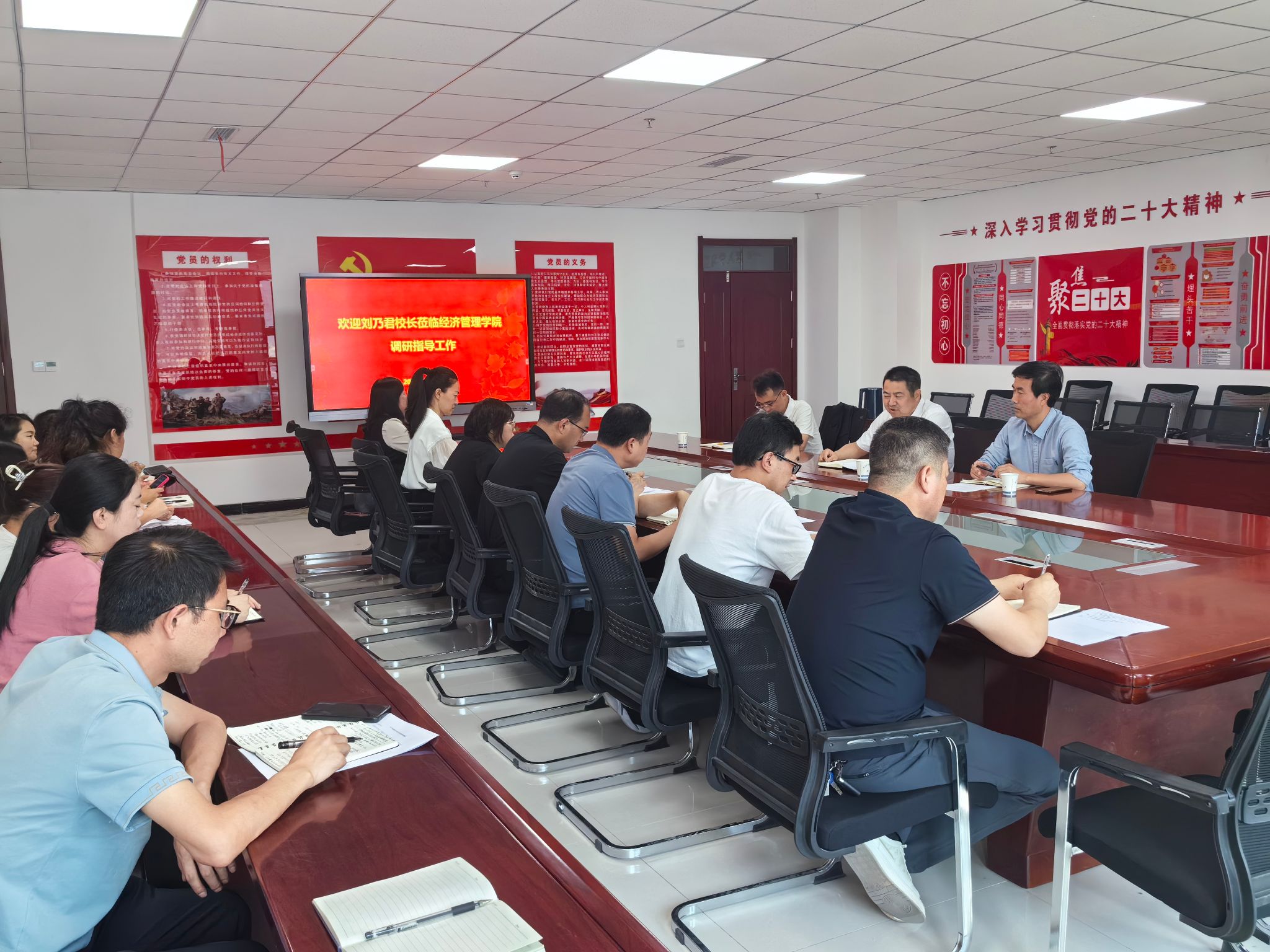 9月25日下午,学校党委副书记、校长刘乃君深入经济管理学院调研指导工作。学生处处长郭建明,学校办公室副主任高宏基陪同调研,经济管理学院领导班子成员、教研室主任和教师代表参加调研座谈会。