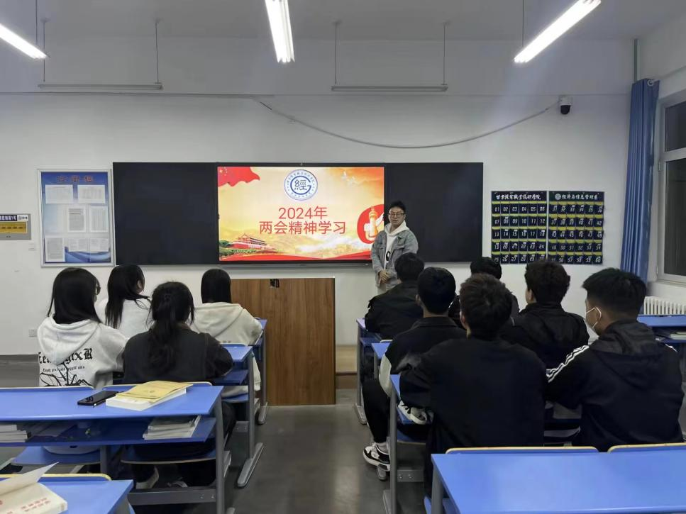 为深入学习贯彻落实全国两会精神,全面领会其深刻内涵及精神实质,2024年3月17日晚自习,经济管理学院各班团支部组织开展“学习两会精神·践行青春使命”主题团会活动。