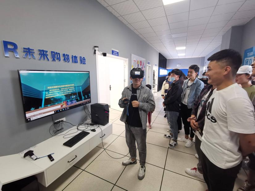 移动商务创新实训室是通过再现生活中移动商务真实商业环境,能够给学生提供认知、体验、验证、展示移动电子商务只是、移动电子商务应用平台,为学生带来身临其境的感官体验。VR体验区是基于移动互联网,以微商城建设、运营、移动营销为主线而设计开发的模拟社会化电子商务购物系统。新颖有趣的体验方式深受同学们喜欢。
